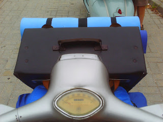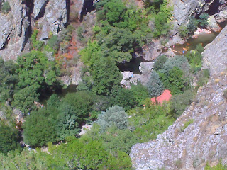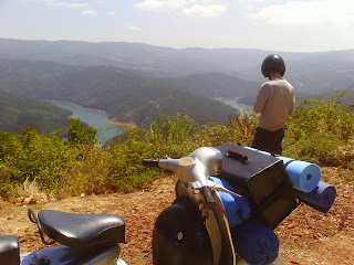 A viagem teve alguns acontecimentos caricatos, como era de esperar, mas daquelas coisas, que no final até se tornam engraçadas e acabam por dar mais "ênfase" à aventura. Desde incerteza do caminho a seguir em Coimbra, a hesitação do rumo correto para Piodão em Gois; o pedido de reserva da gasolina ao subir a serra embora com mais 5lt para a viagem, graças ao "bidão" que transporto neste tipo de percursos, mas a serra parecia não ter fim; o frio de "rachar" à noite na praia fluvial Ana de Avis em Figueiró dos Vinhos e o não ver sitio de jeito para acampar; a viagem dali para um parque de campismo à noite quase sem luz porque a mala tapava a maior parte do farol, coisa que já aperfeiçoei. Completamente à nora numa estrada que é só curvas e desconhecida, mais pareceu que íamos em competição - para dormir! Os 10 (dez) euros que os "mens" do parque cobraram para nos "prender" sem comida e sem poder-mos sair para "curtir" a noite em Figueiró. Aqui valeu as duas latas de atum que levamos na mala e o pão que "sobrou"; em Penela numa tasca junto ao castelo onde nos venderam pilhas usadas que duraram "meia dúzia de fotos"; enfim ... foi giro!