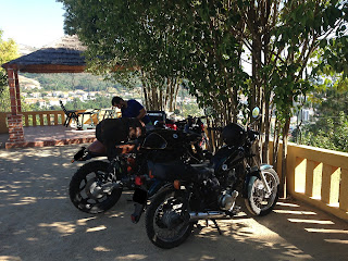 numa BMW K100 modificada para "café race" pelo Tiago, que desde já